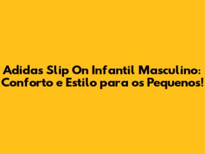 Hey, pessoal! Se vocĂȘ estĂĄ procurando o calçado perfeito para o seu filho, que combine conforto, praticidade e, claro, muito estilo, vocĂȘ veio ao lugar certo. Vamos falar tudo sobre o adidas slip on infantil masculino, um item que tem conquistado o coração (e os pĂ©s) da garotada e dos pais que nĂŁo abrem mĂŁo de qualidade e versatilidade. Prepare-se para descobrir por que esse modelo Ă© uma excelente escolha para o dia a dia dos pequenos!