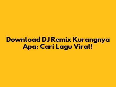 Download DJ Remix 'Kurangnya Apa': Cari Lagu Viral!