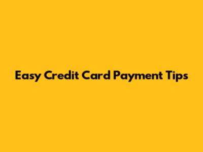 Easy Credit Card Payment Tips