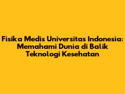 Hai, guys! Pernahkah kamu bertanya-tanya bagaimana teknologi medis canggih seperti MRI, CT scan, atau terapi radiasi bekerja? Nah, di balik semua itu ada ilmu fisika medis yang berperan penting. Dan, salah satu tempat terbaik untuk mempelajari fisika medis di Indonesia adalah di Universitas Indonesia (UI). Yuk, kita telusuri lebih dalam tentang apa itu fisika medis, mengapa UI menjadi pilihan yang menarik, dan apa saja yang bisa kamu dapatkan dari studi ini.