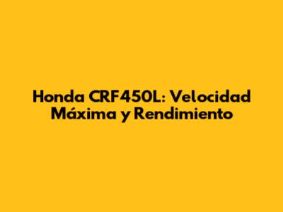 Honda CRF450L: Velocidad Máxima Y Rendimiento