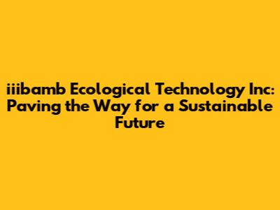 Iiibamb Ecological Tech: Green Solutions For A Better World