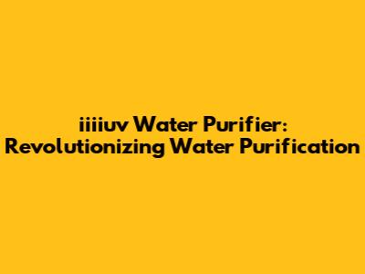 Iiiiuv Water Purifier: Revolutionizing Water Purification