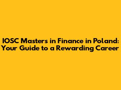 Hey guys! So, you're thinking about a Master's in Finance, and Poland's on your radar? Awesome choice! Poland's become a hot spot for international students, especially those eyeing a career in finance. And when we talk about top-notch programs, the IOSC (International Organization for Standardization Certification) Masters in Finance really shines. Let's dive deep into why this could be the perfect path for you. We'll explore everything from what the IOSC certification entails, what you can expect from a finance master's program in Poland, and how it can supercharge your career. Get ready to have all your questions answered, because we're about to embark on a journey that could change your life! The IOSC certification, often aligned with rigorous finance programs, is a game-changer. It shows employers you're not just book-smart, but also have a solid grasp of industry standards and practices. This is crucial in the world of finance, where precision and compliance are king.