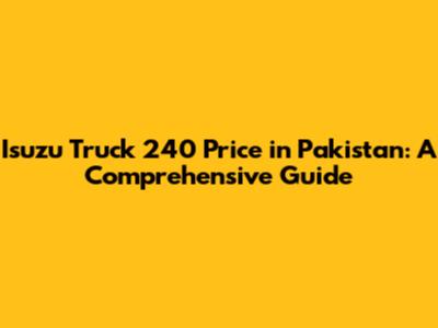 Isuzu Truck 240 Price In Pakistan: A Comprehensive Guide