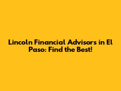 Lincoln Financial Advisors In El Paso: Find The Best!