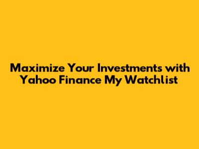 Maximize Your Investments With Yahoo Finance My Watchlist