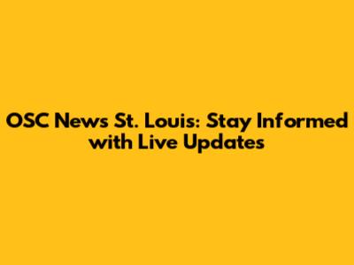OSC News St. Louis: Your Go-To Source For Local Updates