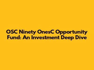 Hey there, finance enthusiasts! Ever heard of the OSC Ninety OnesC Opportunity Fund? If you're on a quest to diversify your portfolio and explore interesting investment avenues, this might just be what you're looking for. We're diving deep into the OSC Ninety OnesC Opportunity Fund, breaking down its intricacies, potential benefits, and everything you need to know before considering it. Let's get started, shall we?