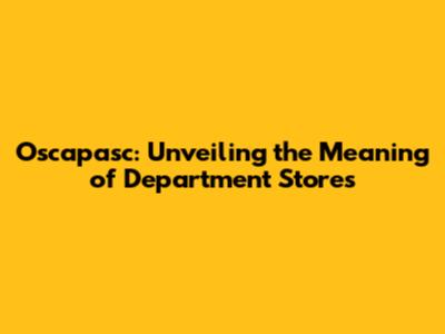 Oscapasc: Your Guide To Department Stores