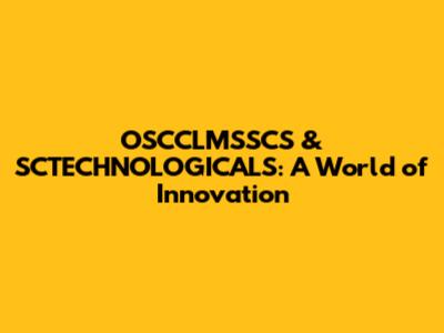OSCCLMSSCS & SCTECHNOLOGICALS: A World Of Innovation