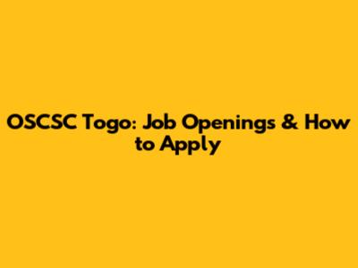 OSCSC Togo: Job Openings & How To Apply