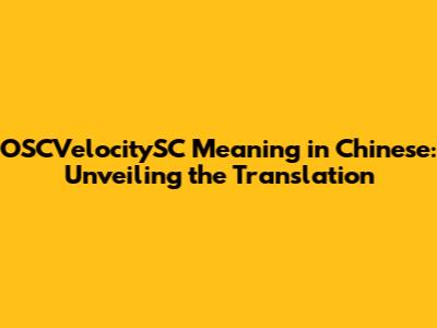 OSCVelocitySC Meaning: Decoding The Chinese Translation
