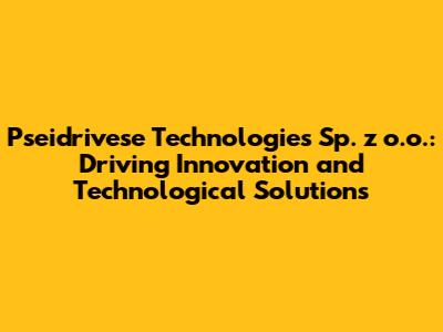 Pseidrivese Technologies Sp. z o.o. stands as a dynamic entity in the ever-evolving landscape of technological innovation. This company is dedicated to providing cutting-edge solutions and services that cater to a wide array of industries. Understanding the core values, services, and impact of Pseidrivese Technologies is crucial for anyone looking to grasp their role in shaping the future of technology.