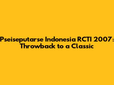 Pseiseputarse Indonesia RCTI 2007: Throwback To A Classic