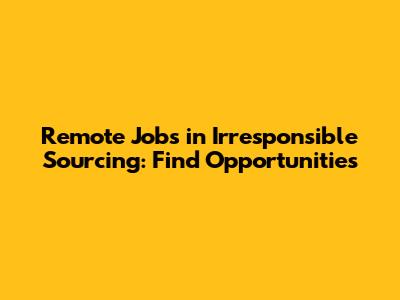 Remote Jobs In Irresponsible Sourcing: Find Opportunities