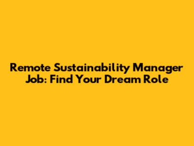 Remote Sustainability Manager Jobs: Find Your Dream Role