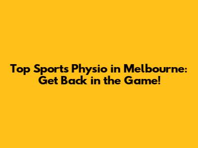 Top Sports Physio In Melbourne: Get Back In The Game!