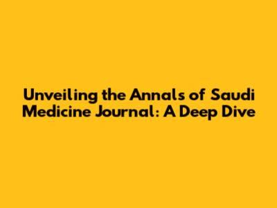 Unveiling The Annals Of Saudi Medicine Journal: A Deep Dive